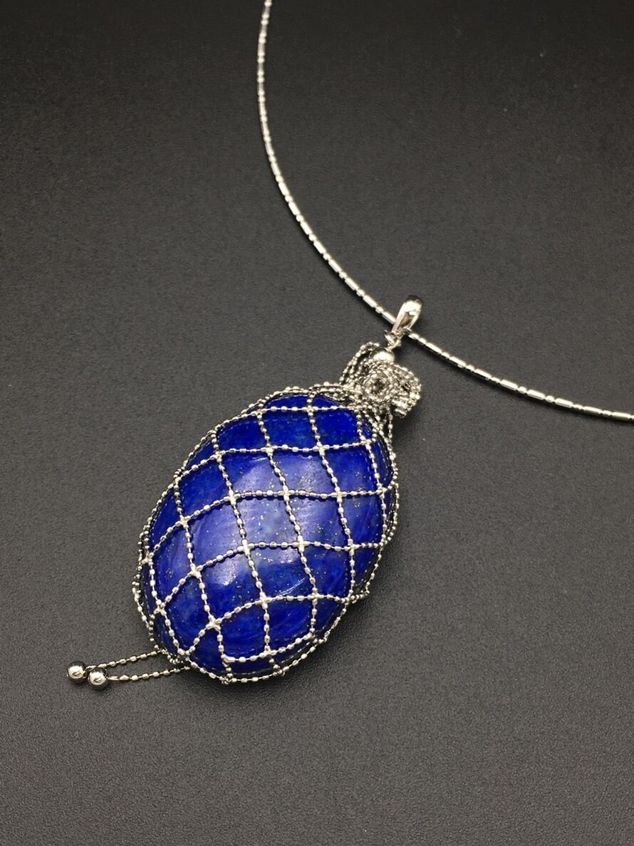 こちらの商品は大変珍しい構造になっており、ルース、ビーズなどを、綺麗に編みこまれたゴールドポーチの中に入れることで、美しいペンダントトップに仕上がるようになっております!